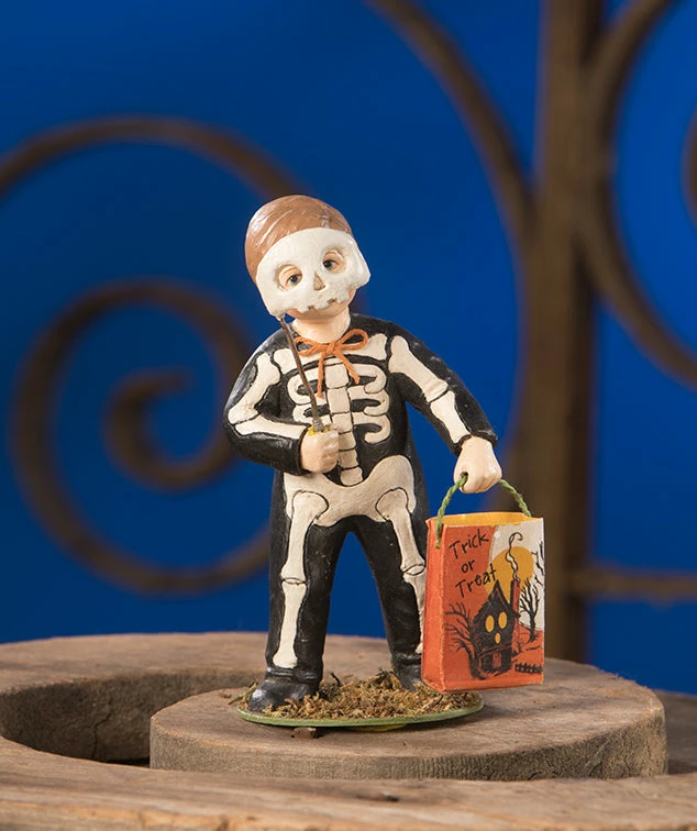 Complete your trick or treating scene with Grim Skeleton Boy figurine.