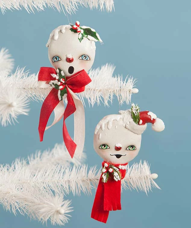 Dream up a delightful Christmas scene with these imaginative Holly and Jolly Snowman Ornaments designed by artist Robin Seeber.