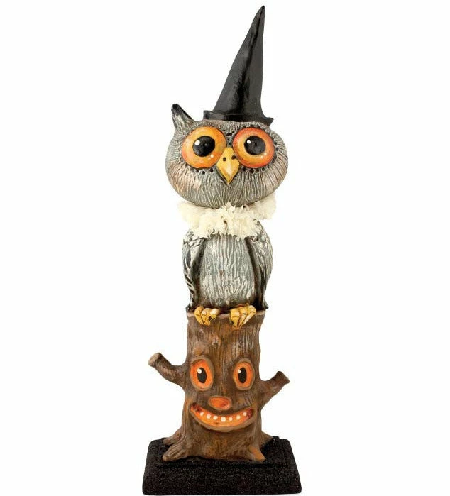 Bring humor to your Halloween celebration with this magical owl perched on a very silly tree stump done in Debra Schoch signature whimsical style.