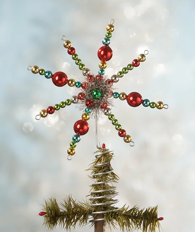 With a retro design this Merry & Bright Starburst tree topper is sure to bring cheer to your Christmas tree.