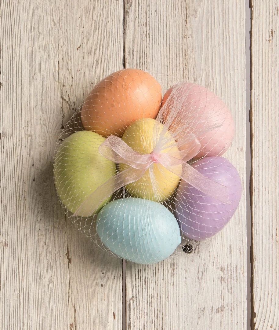 Look what the Easter bunny brought! Six pastel color eggs for your Easter decor. Have fun decorating!