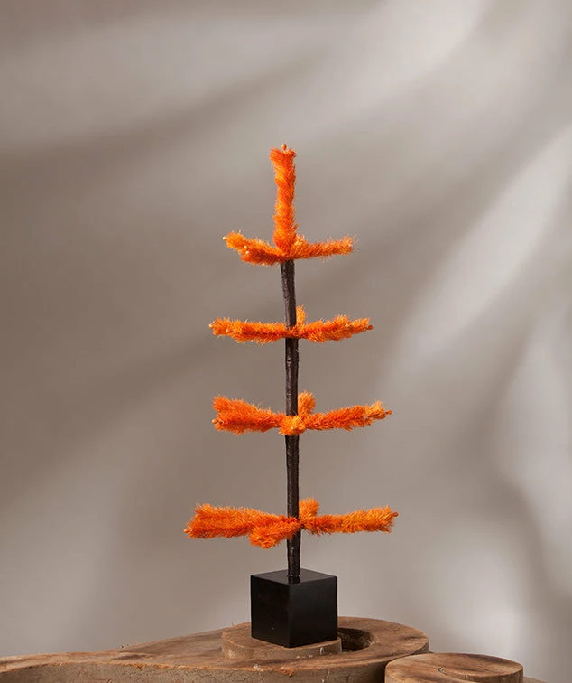 We love this bright pop of color orange sisal tree to show off your favorite Halloween ornaments. Just the right size for your tabletop.