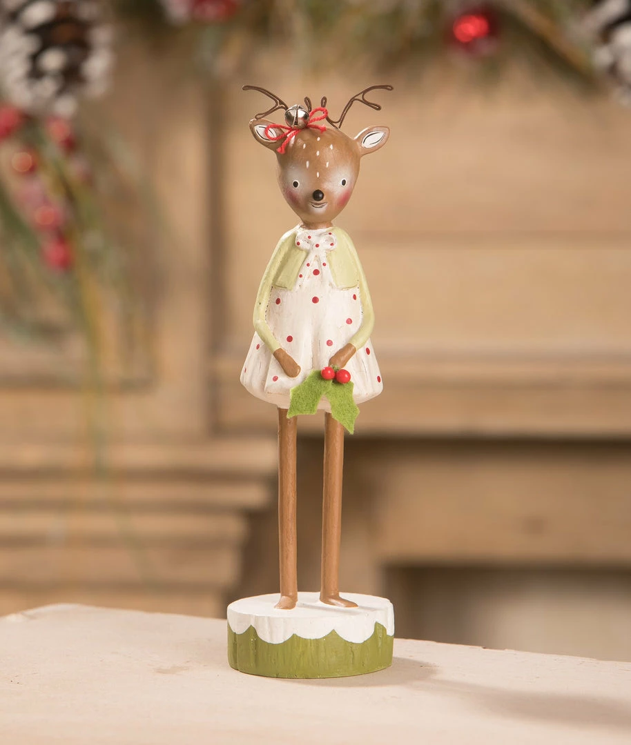 Bring whimsy to your Christmas decorating with this Reindeer with Holly Figurine designed by artist Michelle Lauritsen.