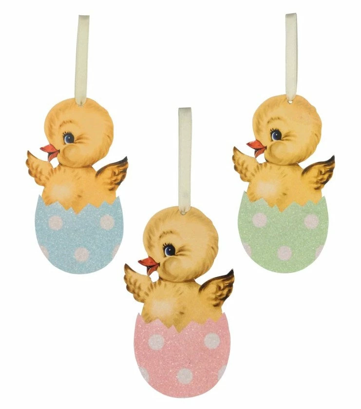 Delight your Easter guests with these cute Retro Easter Chicks hatching fro polka dot eggs.
