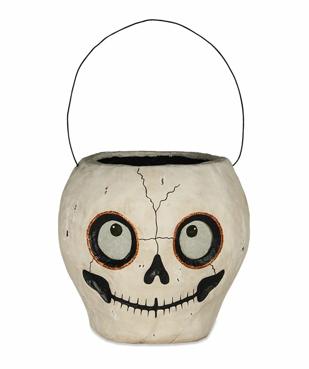 Create a spooky fun atmosphere with this grinning paper mache skull bucket.