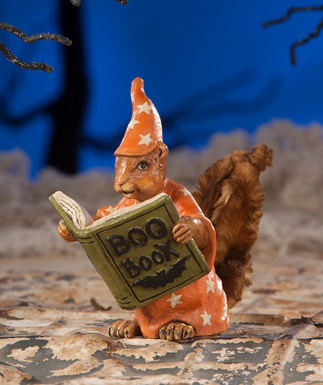 Squirrel Brew Master is looking up a particular recipe from his book of concoctions. He is putting together a unique brew of green toad slime stew for Rabbit Witch. Create a spooky fun Halloween woodland scene and let your imagination soar.