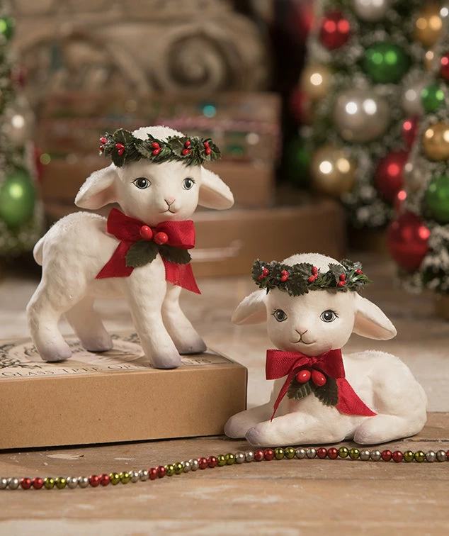 Create a sweet Christmas scene with these darling doe-eyed lambs.