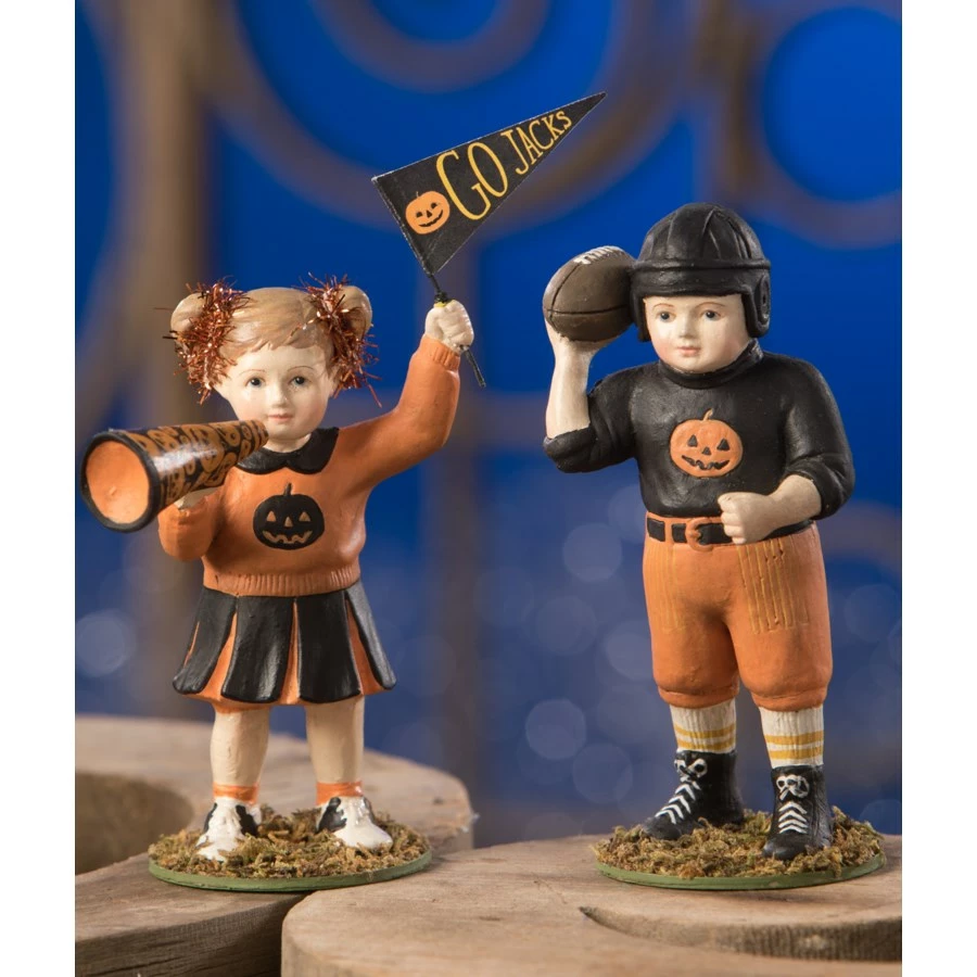 - Set includes cheerleader and football player