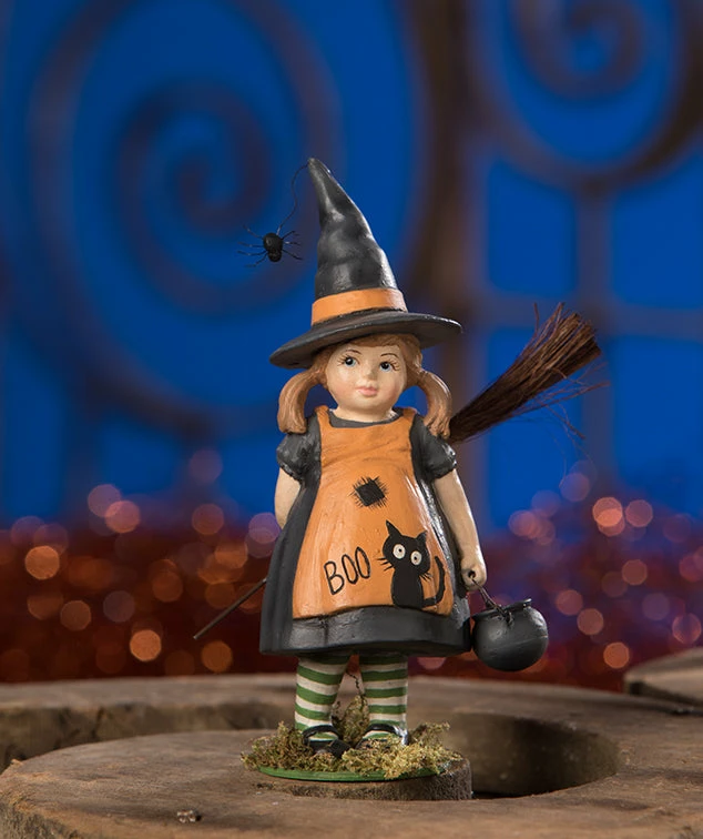 Winnie loves her witch costume nanna made, especially her orange pinafore. Create an adorable Halloween scene with Winnie Witch.