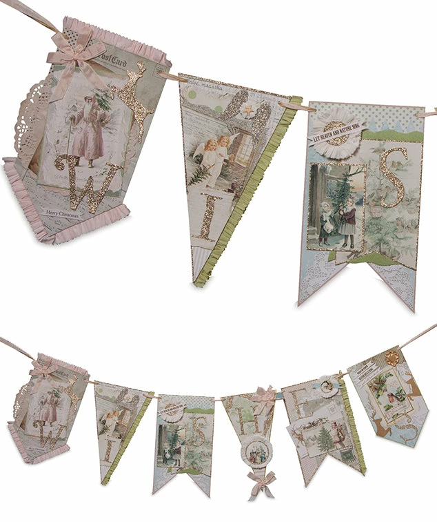 Add a feminine touch to your Christmas decorating with this gorgeous garland with vintage Christmas images in pastel hues.