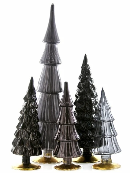 Give your holiday decorating designer style with these chic Black Glass Trees in varying hues, shapes and sizes.
