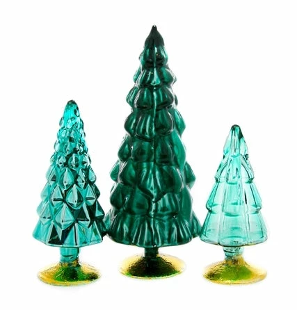 Get creative with these teal glass trees in assorted shapes, sizes, and color tone .