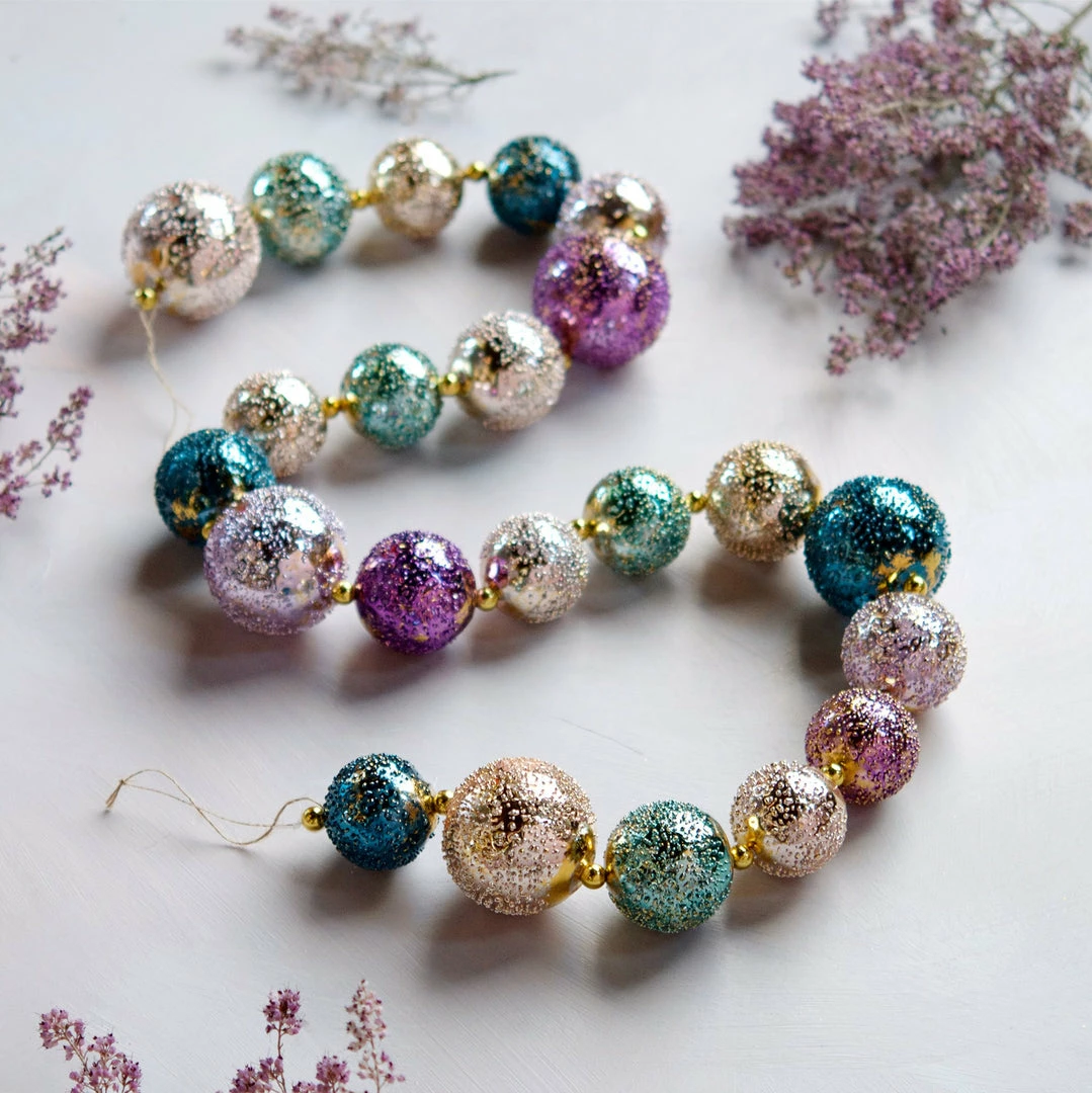 Holidays will shine with this gorgeous Gold & Jewel Tone Textured Glass Ball Garland