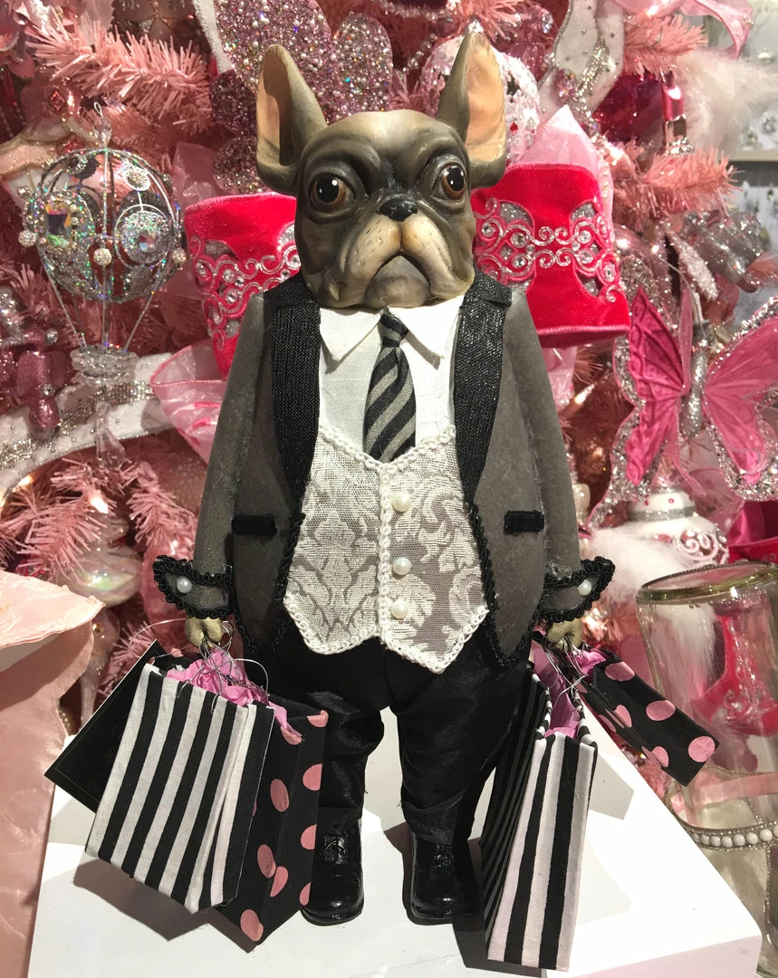 Katherine’s Collection French Bull Dog With Shopping Bags New!