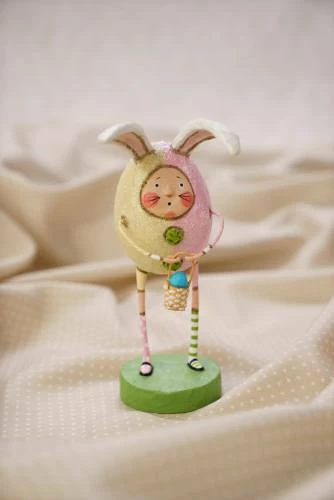 An adorable child dressed as an Easter Egg with bunny rabbit ears and the cutest mismatched striped socks.