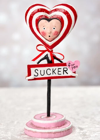 Bring humor to your Valentine’s Day decorating with this funny Sucker for You figurine designed by artist Lori Mitchell.