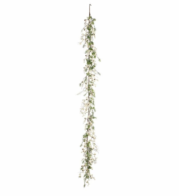 Napco Snowy Pearl Crabapple And Boxwood Garland