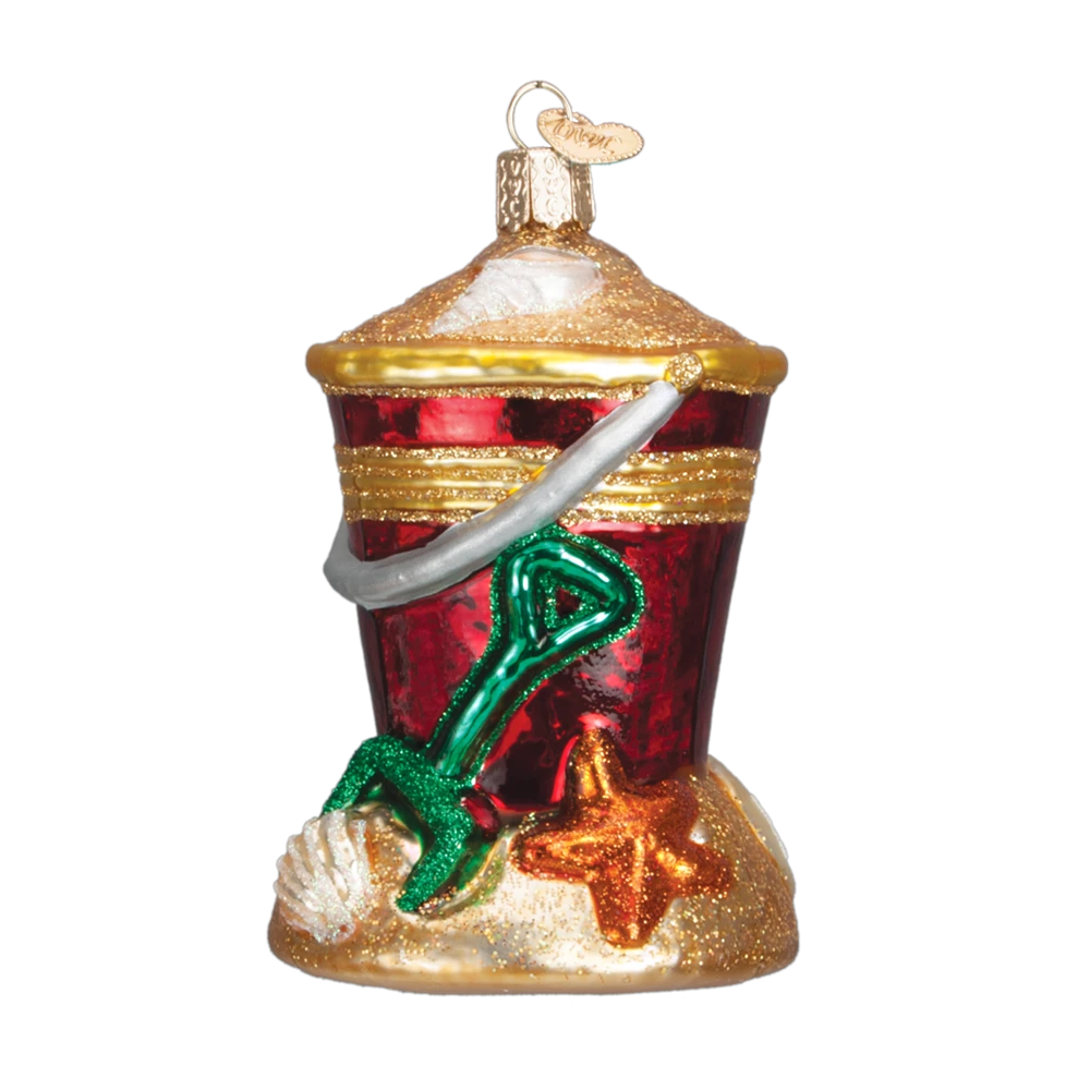 The Sand Pail Ornament is a reminder of summer childhood days spent at the seashore. Memories of hotdogs, ice cream novelties and playing in the sand come to mind. In those days a good, sturdy sand pail and shovel was all that was needed for hours of fun.
