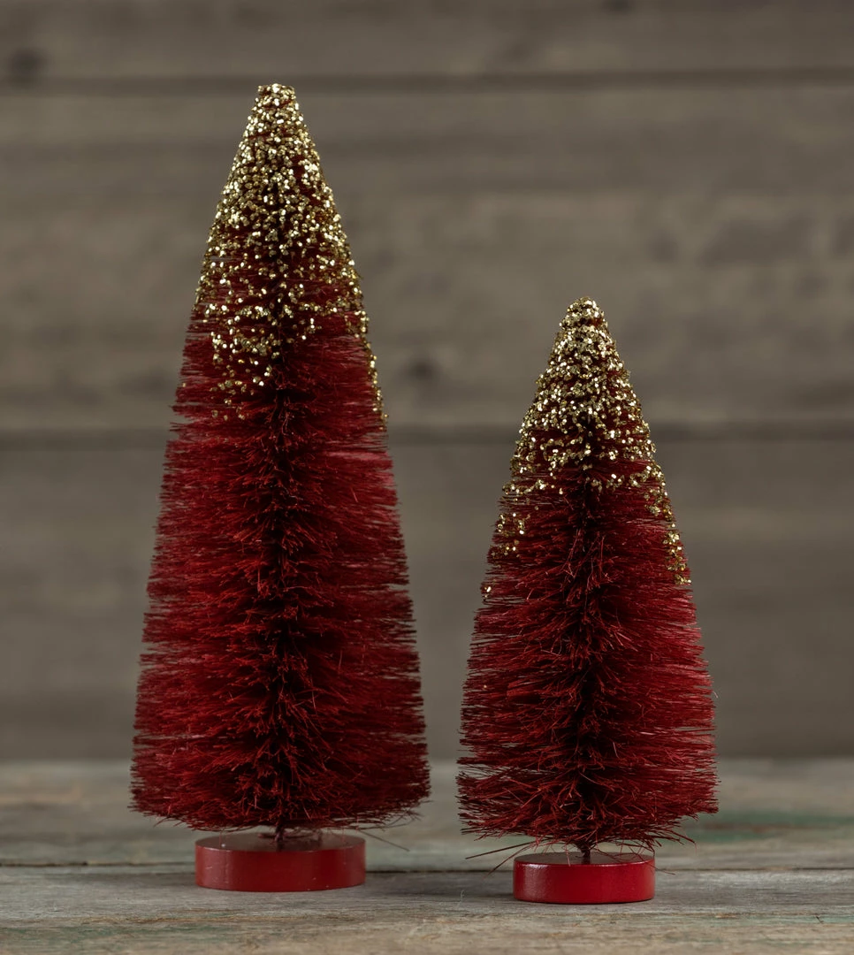 Ragon House New! Red Bottle Brush Trees With Gold Glitter