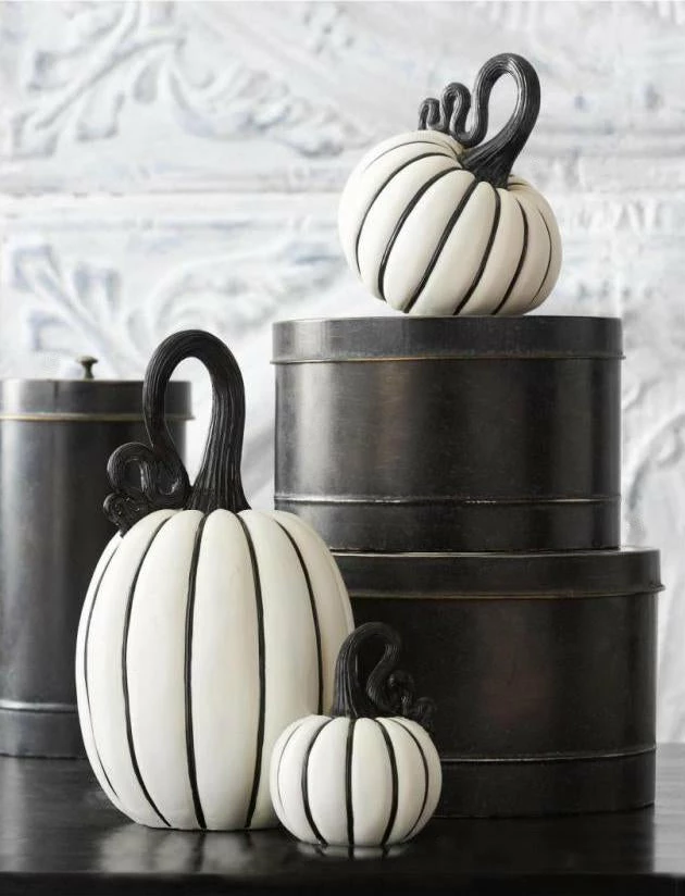 Give your Halloween decor chic design with these spook-tacularly stylish Black & White Striped Pumpkins.