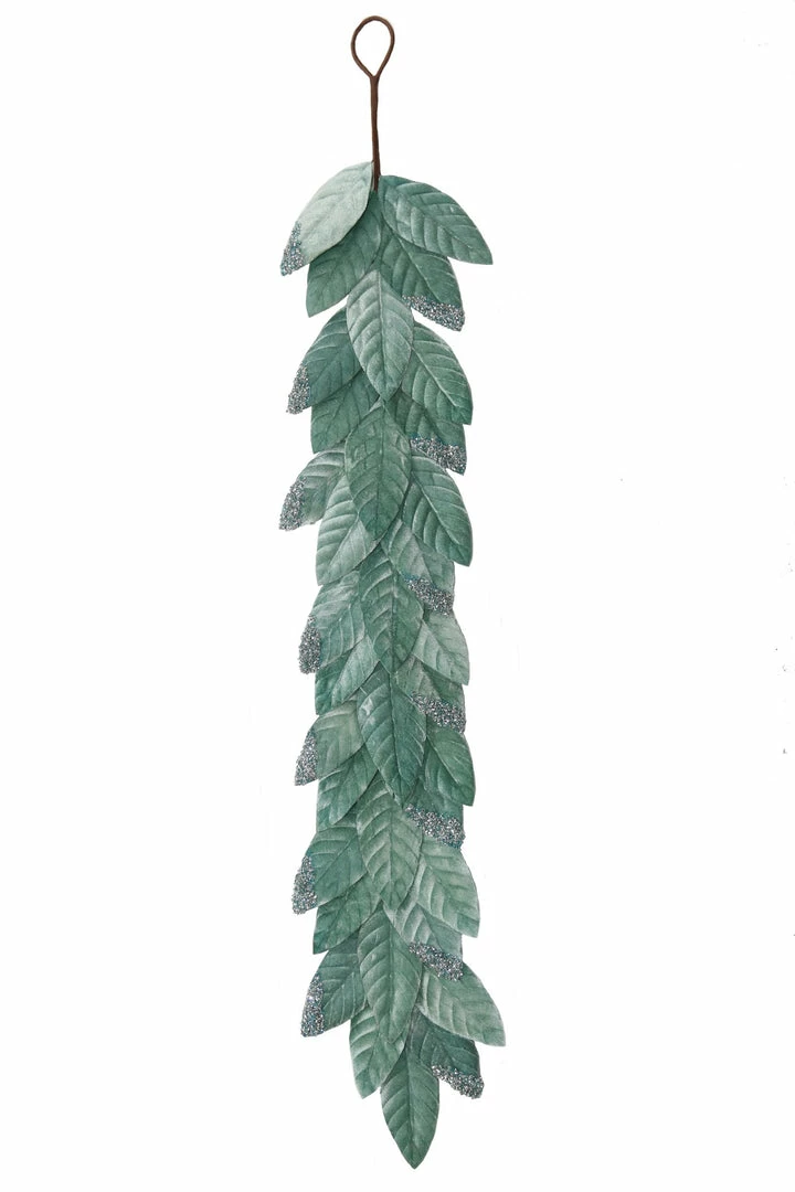 Give you’re decorating a designer look with this unique aqua leaf garland with glitter.