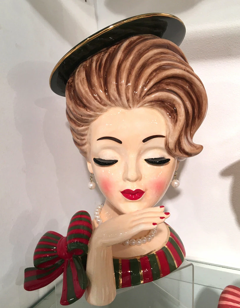 TheHolidayBarn.com Glamour Girl Head Vase, Brunette New!