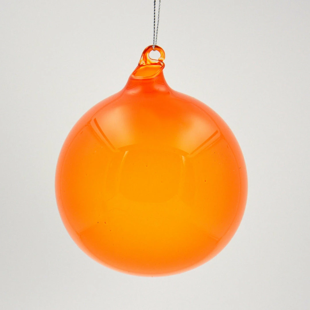 Personalize your holiday decor with these hand-blown translucent Citrus Orange Bubblegum Glass Ball Ornaments by designer Jim Marvin.