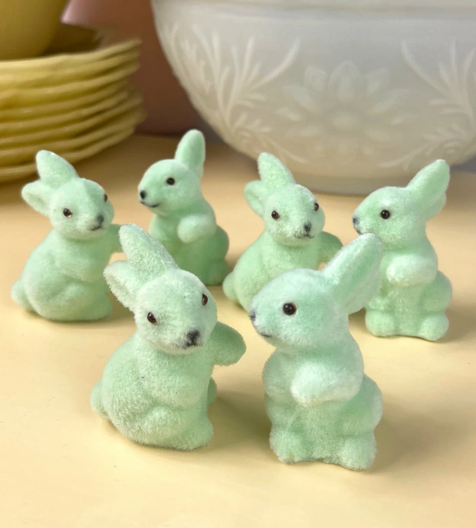 Give your Easter decor a playful feel with these cute little Mint Green Flocked Bunny Rabbits.