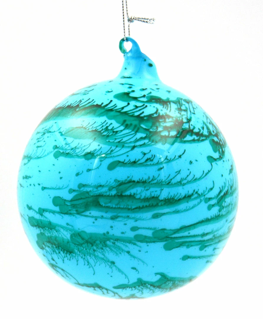 Get artistic with your Christmas decor with these designer blue green marble glass ball ornaments.