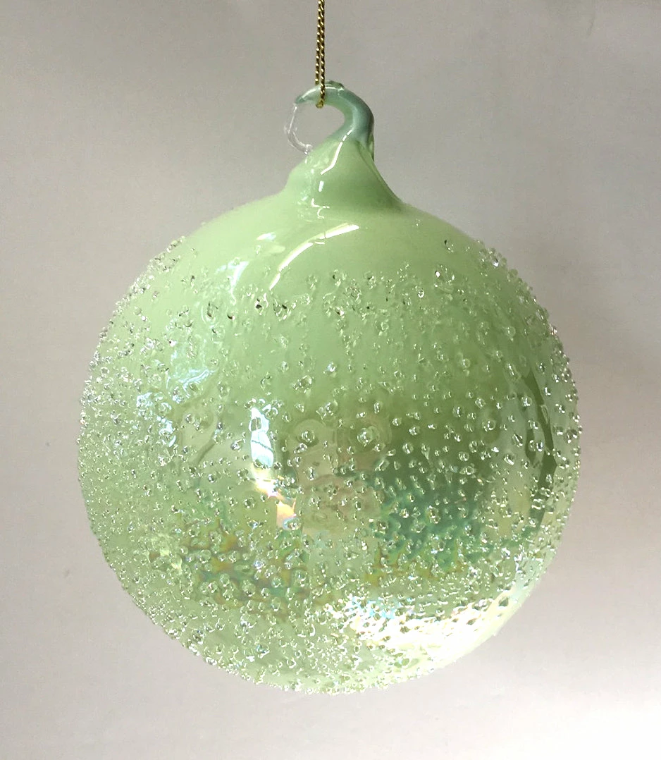 Add interest to your Christmas decorating with these Light Green Art Glass Ball Ornaments.