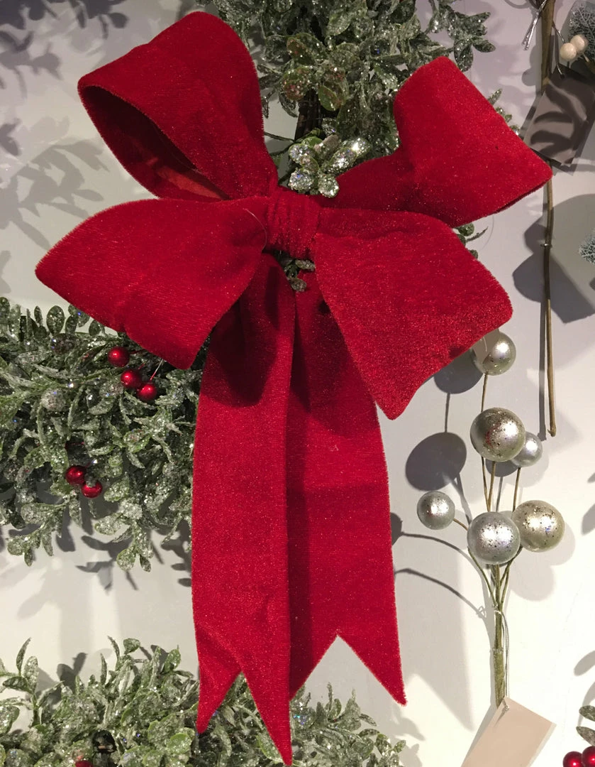 Quickly add a festive touch to wreaths and swags with this beautiful Red Velveteen Bow Clip.
